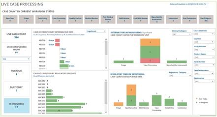 A Live Case Processing dashboard helps pharmacovigilance staff efficiently prioritize the review of cases approaching their review deadlines.
