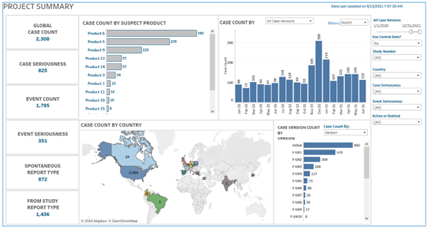 An accurate understanding of the pharmacovigilance process by stakeholders who are external to pharmacovigilance activities, including regulatory auditors and organizational decision makers, is essential for effective oversight and compliance. These stakeholders often have specific questions about the pharmacovigilance process that can be quickly resolved with intuitive visualizations of relevant pharmacovigilance data.