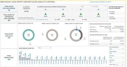 Quality control – the assurance that safety data is processed accurately, completely and consistently – can also be improved with oversight into operational pharmacovigilance data. For instance, the quality control dashboard from UBCs Tableau Data Analytics platform allows for the analysis of quality control corrections at an individual case level. By analyzing quality control correction trends, quality control specialists are able to proactively identify specific areas of concern and develop long-term corrective and preventative actions to address those concerns, such as additional training or targeted adjustments to case processing activities. Later, the same quality control dashboard can be used to assess the effectiveness of corrective interventions.